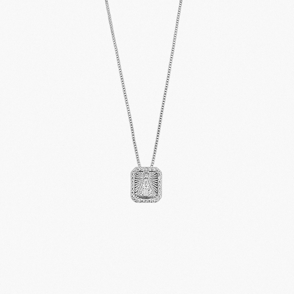 O Colar Nossa Senhora Cravejado Prata é ideal para qualquer ocasião, seja para um encontro casual ou um evento especial. Não espere mais! Adquira já o seu e leve um símbolo de proteção e beleza onde quer que você vá!