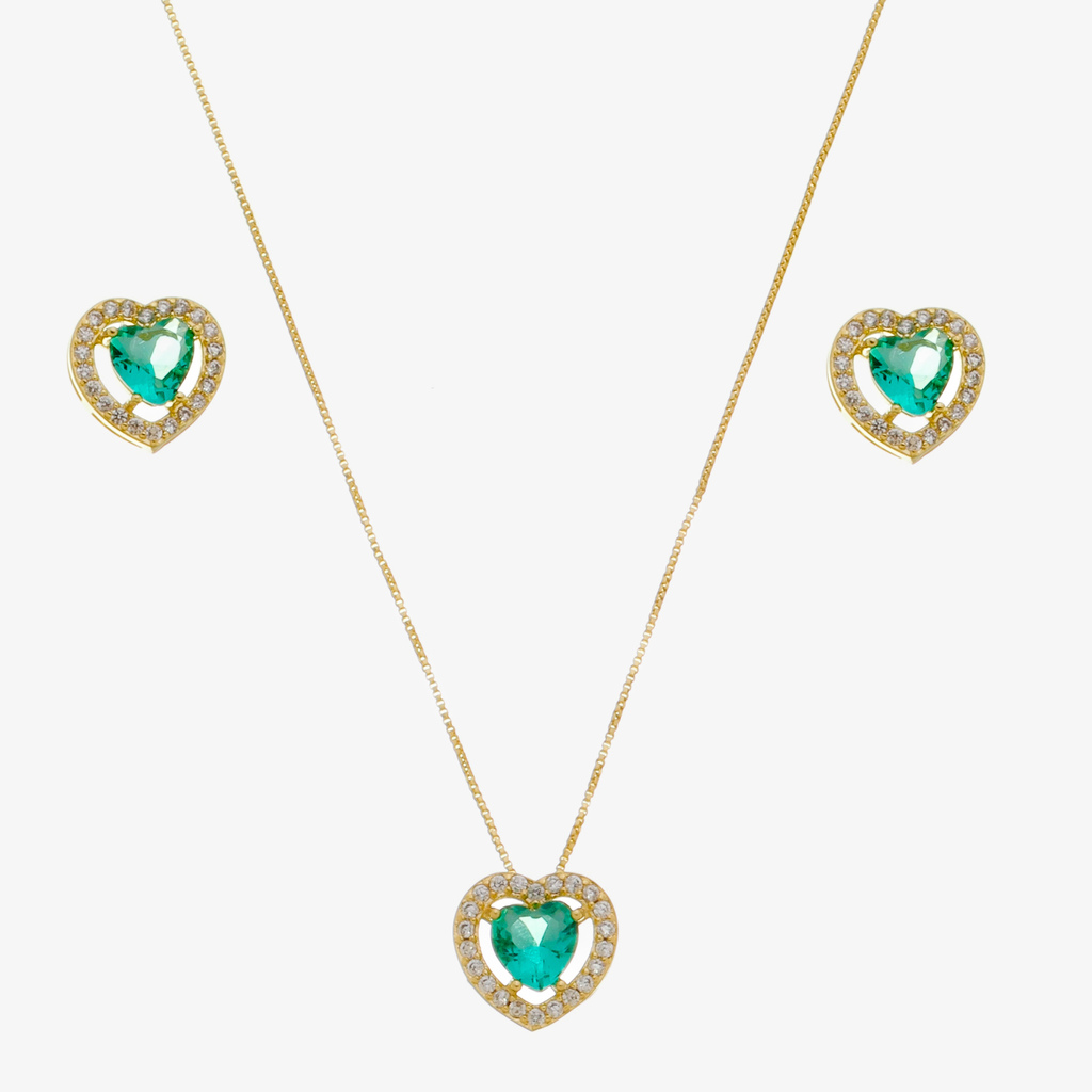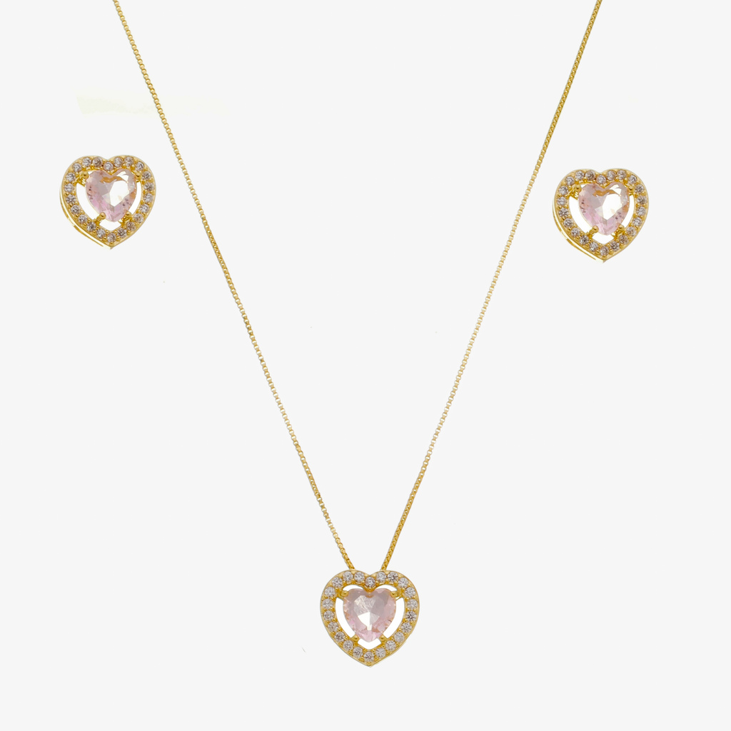 Este conjunto de colar e brincos é a peça perfeita para quem busca elegância e versatilidade! Com um encantador formato de coração e delicadamente cravejado, ele brilha em qualquer ocasião, seja no seu dia a dia ou em eventos especiais como casamentos e formaturas.