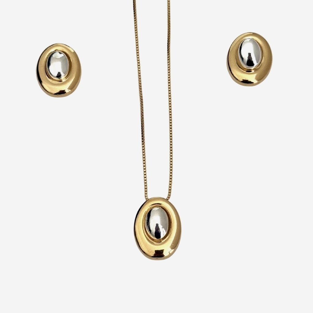 Apresentamos o Conjunto Maite, composto por um colar de 45 cm e um par de brincos no formato oval com pingentes em mix de banhos dourado e prata. Essa peça autêntica e elegante é perfeita para transformar qualquer produção simples em um visual sofisticado. Ideal para quem busca versatilidade e estilo, o conjunto é banhado e oferece conforto para uso prolongado. Adquira agora e eleve seu look com charme e exclusividade!
